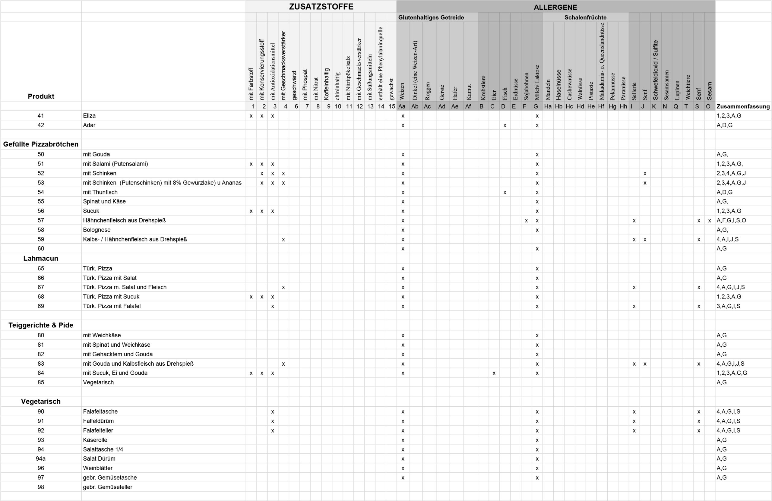 Allergene und Zusatzstoffe